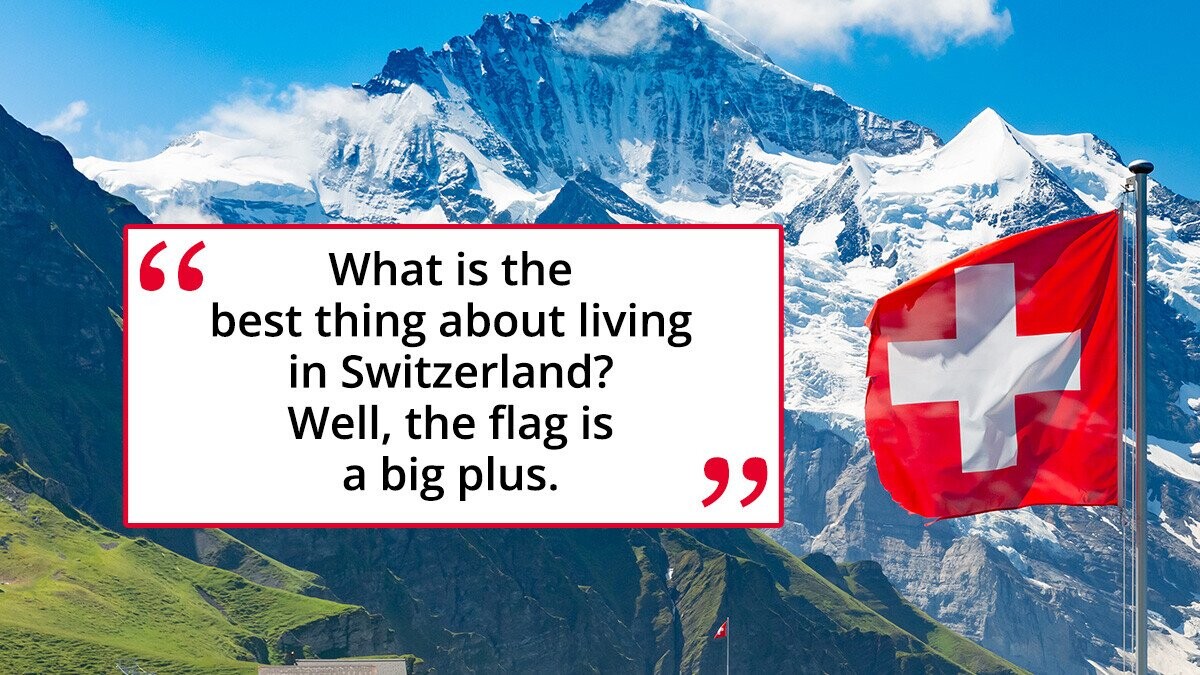 “What is the best thing about living in Switzerland? Well, the flag is a big plus.”