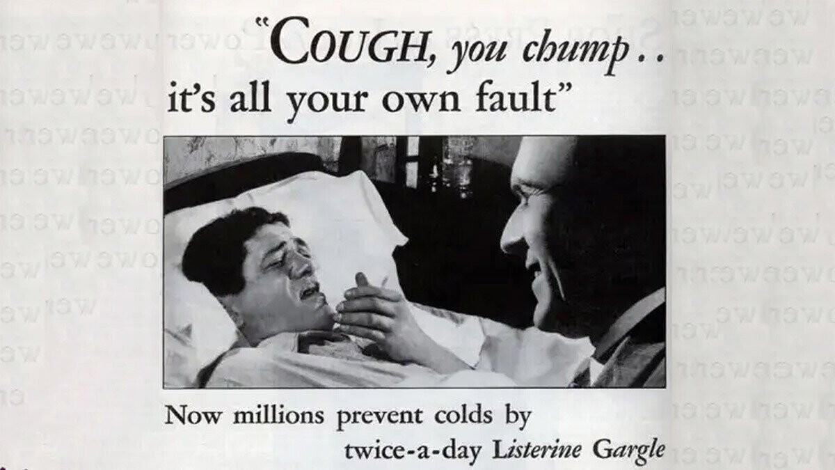For 55 years, Listerine ads claimed that gargling with the mouthwash prevents colds by killing germs. It does not — or, if it does, gargling with warm water does the job just as well. So, in 1976, the FTC ordered Listerine ads to say, “Contrary to prior advertising, Listerine will not help prevent colds or sore throats or lessen their severity.”