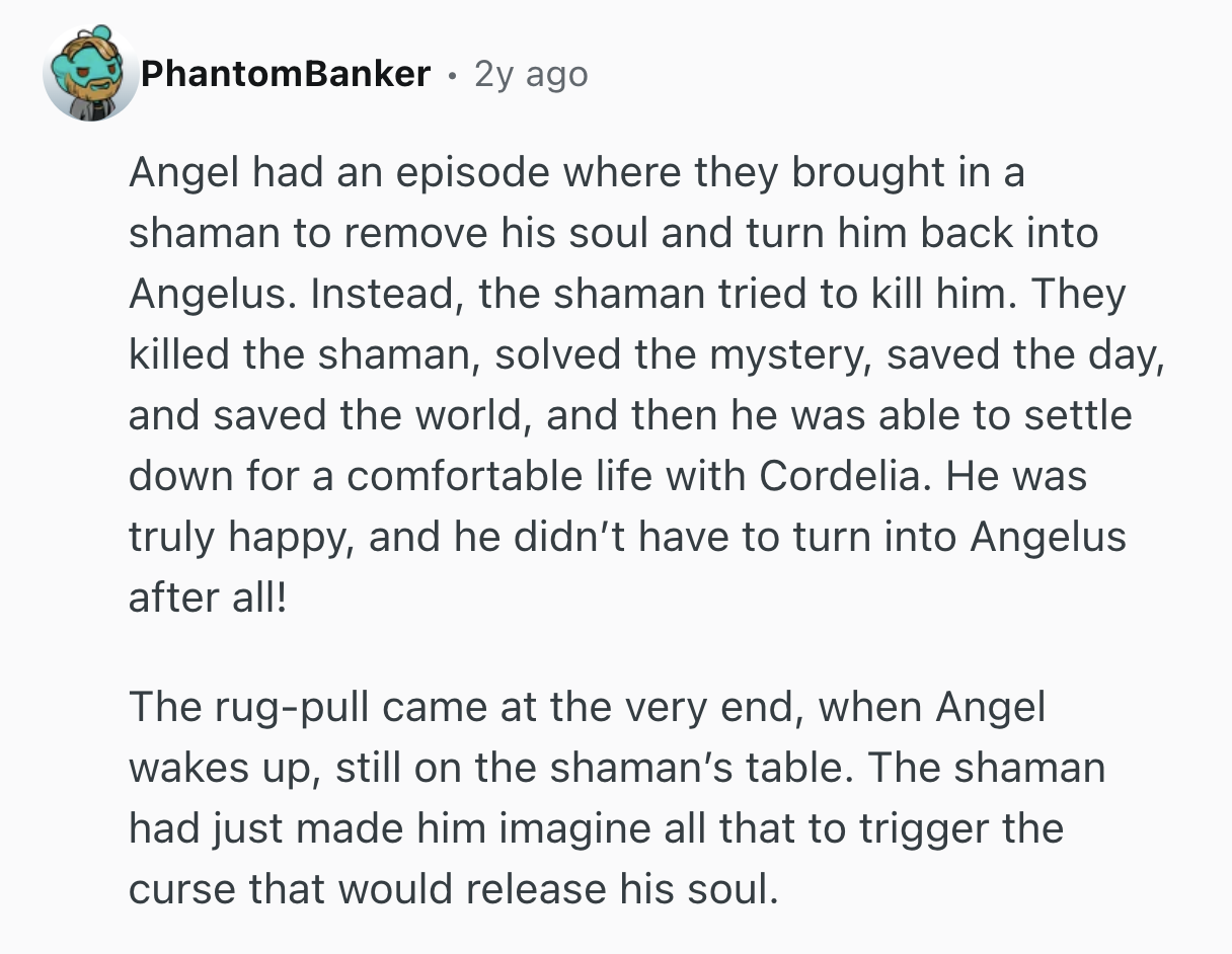 They asked, “What are examples of the TV trope of ‘it was all a dream’ twist that actually worked well?”