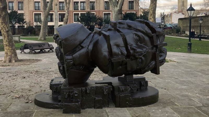 A huge sculpture of Oscar Wilde’s head lying on its side was condemned as “absolutely hideous” by the playwright’s grandson, Merlin Holland.