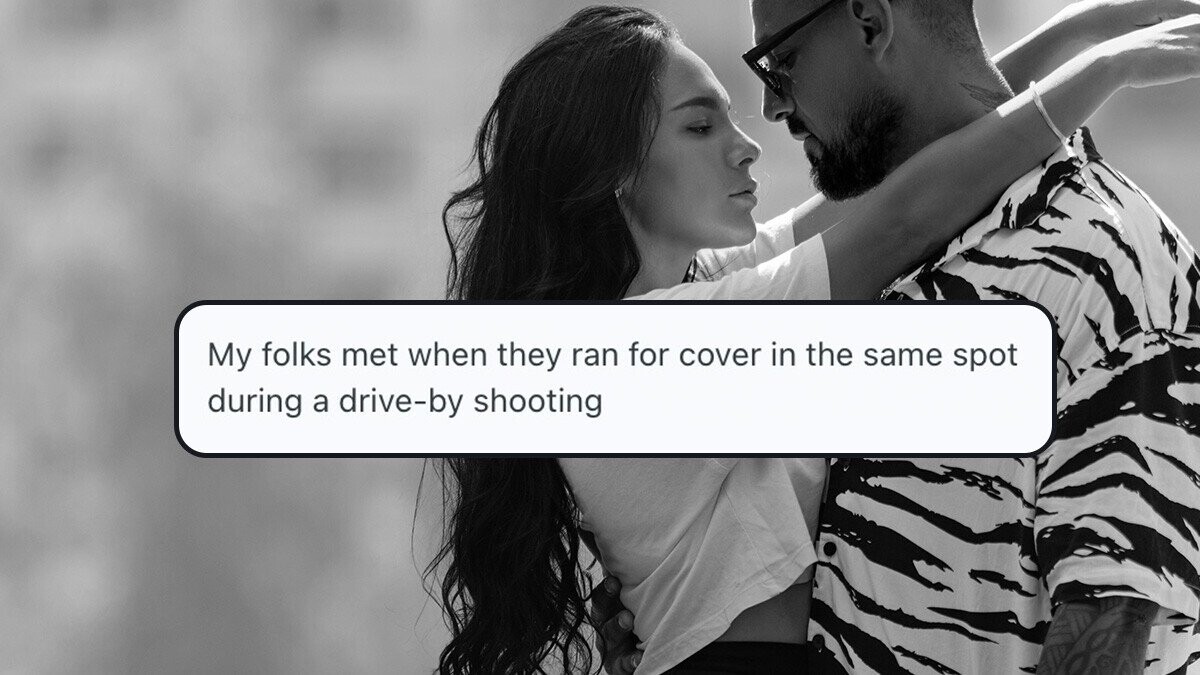 One Redditor passed along the story about the unlikely way his parents met. His father was on vacation and enjoying the view from his hotel balcony. Out of nowhere, the balcony collapsed, and he landed on the balcony directly below him — breaking his pelvis, arm and knee in the process. Thankfully, the bone-shattering pain didn’t stop him from flirting with the girl staying in the room he crashed into (aka the Redditor’s mom).