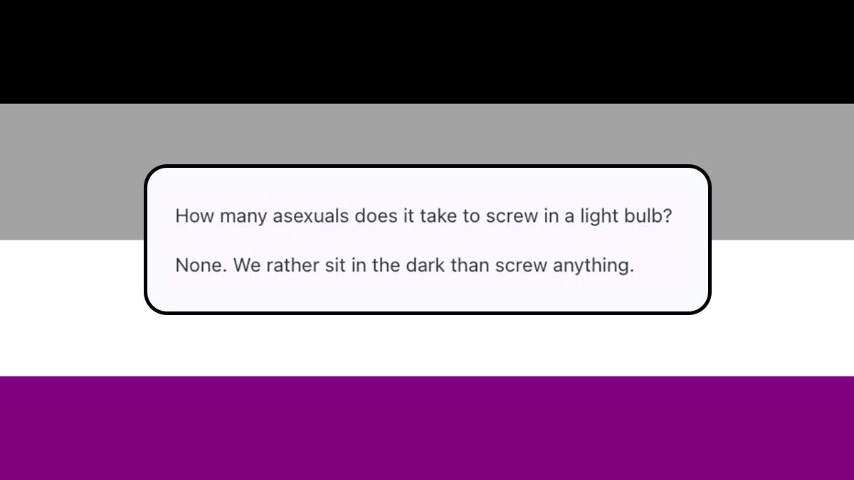 Just ask how many asexuals it takes to screw in a light bulb (“none, we’d rather sit in the dark than screw anything”), what you call a long-nailed lesbian (“single”) and why nonbinary prospectors head out west (“there’s gold in them/their hills”).