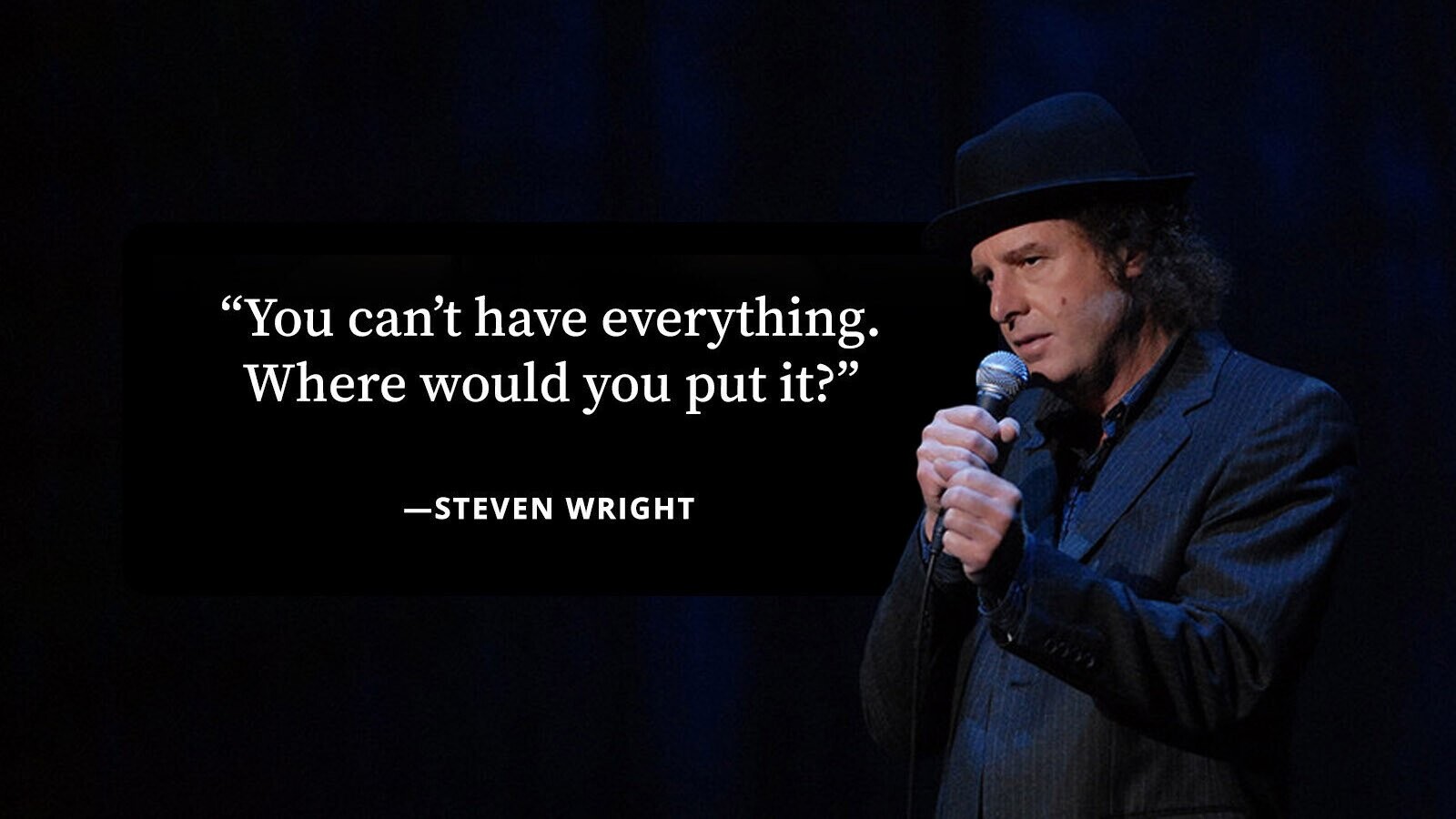 If you believe brevity is the soul of wit, Steven Wright’s jokes must be absolutely overflowing with life force. You’re not going to find act-outs, characters or even much in the way of multiple volume levels, but you’re going to get impeccably written jokes. Maybe that’s why he’s fallen by the wayside in the pantheon as of late, something that these jokes should show is absolutely criminal.