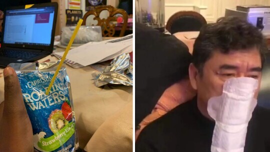 Someone opening a juice wrong.
